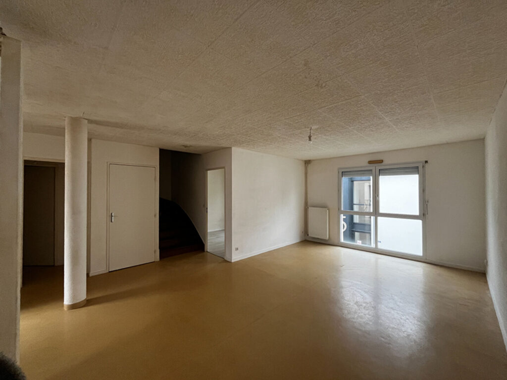 ANGERS LES JUSTICES – 16 square Louis Jouvet au 1er étage, appartement en duplex comprenant au premier niveau une entrée donnant sur un séjour, une cuisine indépendante, wc, placards, chambre puis à l’étage, 2 chambres, une salle de bain et un grenier.