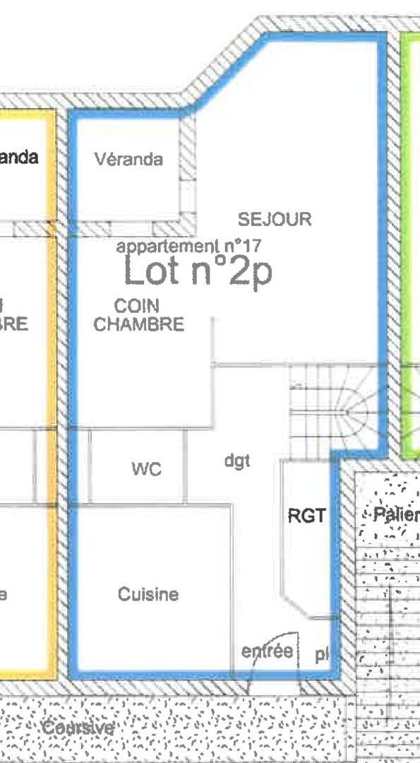 Au 61 Rue de la Picotière, Appartement T4 souplex (lot 2), 90.92m², au premier niveau une entrée avec placards, grand séjour, coin salon ou chambre, une grande loggia, wc, puis au rdc une salle de bain avec WC, deux chambres donnants sur terrasse dont une avec placards et un débarras.