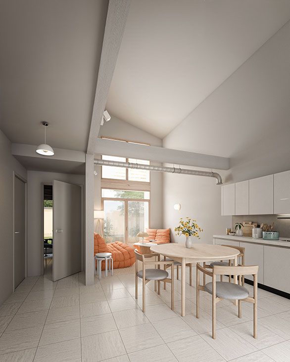 Ces maisons en bois intègrent une halle climatique en façade, un espace qui optimise naturellement le confort thermique au quotidien : en hiver, elle capte la chaleur solaire, tandis qu’en été, elle favorise la ventilation naturelle, réduisant ainsi les besoins énergétiques. De plus chaque maison à son jardin privatif. Grâce à l’utilisation de matériaux biosourcés comme la terre-paille et des isolants naturels, ces logements dépassent les normes énergétiques 2031, alliant durabilité, bien-être et adaptation aux enjeux climatiques.