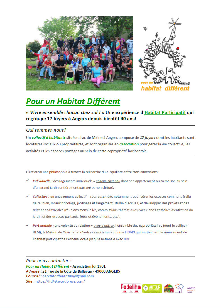 Au coeur du lac de Maine, rue de la cote de belle vue, au sein d’un habitat participatif « Pour un Habitat Différent », pavillon comprenant une belle pièce de vie ouverte sur la cuisine et donnant sur le jardin, arrières cuisine, 4 chambres, 2 salles d’eau et 2 WC.
